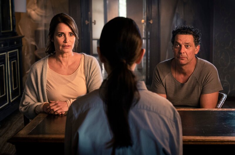 Die junge LKA-Beamtin Sarah Brandt (Anna Bederke, Mitte) teilt Mikis getrennt lebenden Eltern Nikola Walter (Anja Kling) und Klaus Witt (Gregor Bloéb) mit, dass sie gemeinsam in den Zeugenschutz müssen.Bild: © ARD Degeto/Stephan Rabold