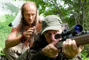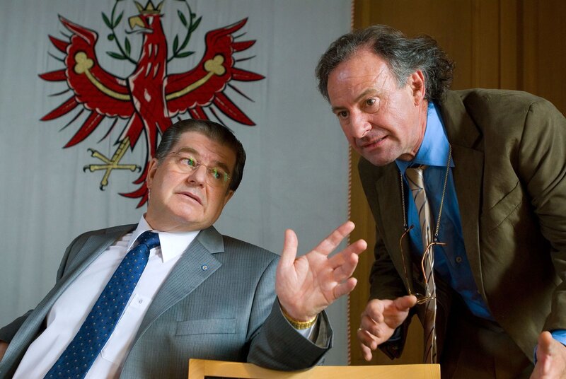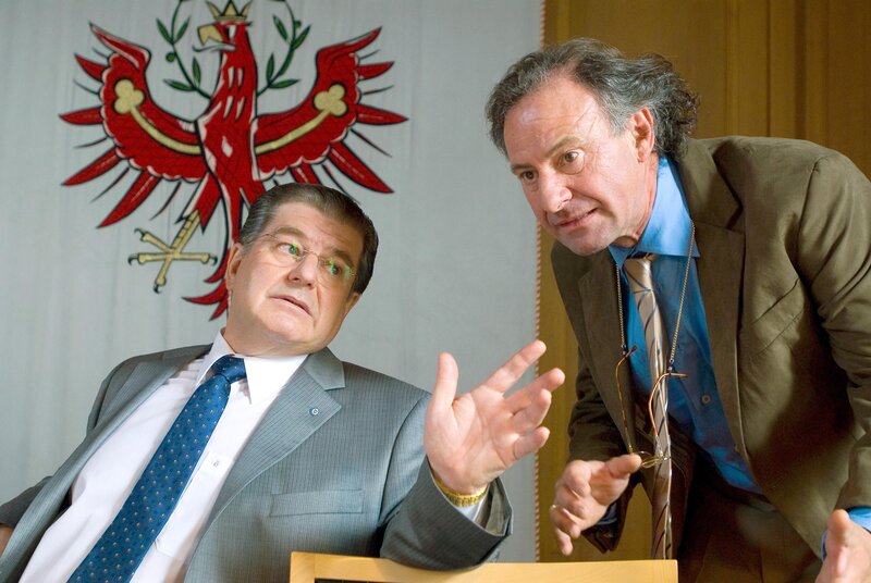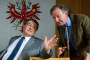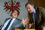 Wirbel um Bär Bruno: Der Tiroler Landeshauptmann (Erwin Steinhauer, links) und der Jäger Jakob Krautschneider (Walter Sachers) diskutieren über einen möglichen Abschuss des Bären Bruno.