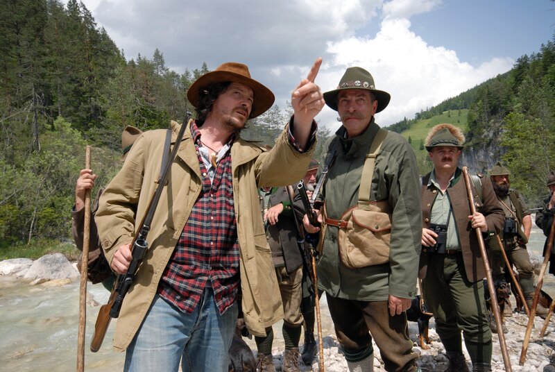 Eine Gruppe von Jägern - allen voran die erfahrenen Schützen Wolfgruber (Fritz Karl, links) und Lettenbichler (Herbert Knaup, Mitte) - macht sich in die Berge auf, um Bär Bruno endlich zu zur Strecke zu bringen.