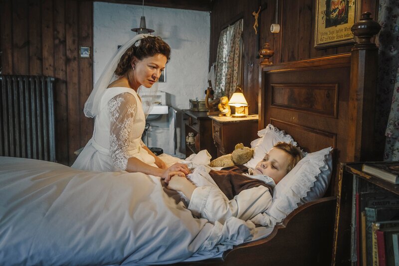 Gefi (Hannah Herzsprung) ist im Begriff, den Sohn des Bürgermeisters zu heiraten, als ihr Sohn, der kleine Maxl (Josef Staber) einen furchtbaren Unfall erleidet.Bild: © Hendrik Heiden / LEONINE, herbX film, Perathon Medien GmbH
