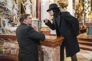 Der Boandlkramer (Michael Bully Herbig, links) hat begriffen, dass er dringend Nachhilfe in Liebesfragen braucht, wenn er Gefis Herz erobern möchte. Deshalb wendet er sich an den erfolgreichen Heiratsschwindler Max Gumberger (Sebastian Bezzel, rechts), den er eigentlich in die Hölle bringen sollte.Bild: © Hendrik Heiden / LEONINE