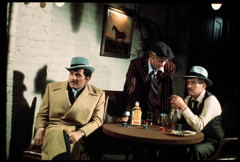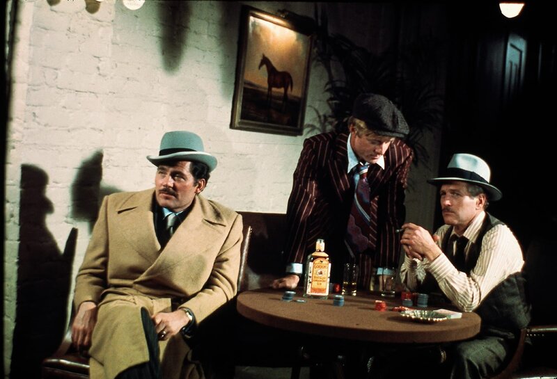 Der Zocker Lonnegan (Robert Shaw, hinten) ahnt nicht, dass die Gauner Henry (Paul Newman, links) und Johnny (Robert Redford, rechts) ihn reinlegen wollen.Bild: © ARD Degeto