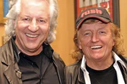 v.l.: Hermann Erbel, der als ehemaliger Schlagzeugmusiker unter dem Namen Herman Rarebell bekannt ist mit Musikproduzent Frank FarianBild: © SR/Roland Helm
