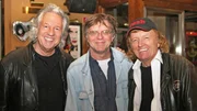 v.l.n.r.: Hermann Erbel, der als ehemaliger Schlagzeugmusiker unter dem Namen Herman Rarebell bekannt ist mit SR Moderator Roland Helm und Musikproduzent Frank FarianBild: © SR/Roland Helm