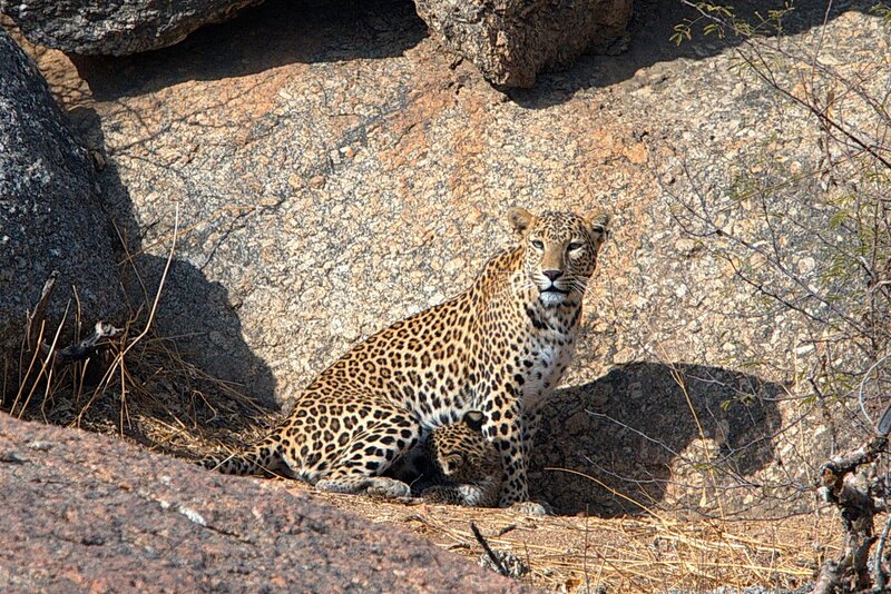 Im Nordwesten Indiens teilt das Aravalligebirge den Bundesstaat Rajasthan in zwei Klimazonen, die Thar-Wüste im Norden und im Süden eine fruchtbare Ebene voller Seen, wie die rund um die Stadt Udaipur. Die Ausläufer dieses Gebirges sind übersät mit prähistorischen Steinformationen, hinduistischen Klöstern und kleinen Dörfern. Hier leben neben den Rabari, einem Volk, das mit seinem Vieh als Halbnomaden umherzieht, auch einige Dutzend Leoparden, die sich in direkter Nachbarschaft in den Felsen und Grotten niedergelassen haben. Teilweise ziehen einzelne Leopardinnen dort ihren Nachwuchs groß, teilweise teilen sich mehrere männliche Tiere eine Höhle. Solch große Raubkatzen, die in der Nähe von Städten oder Dörfern leben, werden in Indien oft vergiftet oder erlegt, aber in dieser Region leben Mensch und Tier friedlich nebeneinander. Die Leoparden reißen zwar oft Schafe oder Ziegen der Rabari, greifen jedoch keine Menschen an. Sie haben es eher auf die Hanuman-Affen abgesehen, die zu Hunderten in den Felsen leben und ihre Nahrungsgrundlage darstellen. Diese fallen ihrerseits jedoch auch häufig über Leopardenbabys her und töten sie. Auf einem der Felsvorsprünge des Gebirges steht ein hinduistischer Tempel, der von den Hindus der umliegenden Dörfer häufig besucht wird. Nur wenige Meter vom regen Treiben entfernt, dient eine Grotte direkt unter dem Eingang des Tempels einer Leopardin als Unterschlupf. Für diese Dokumentation wurden sie und ihr Nachwuchs über mehrere Monate hinweg genau beobachtet.