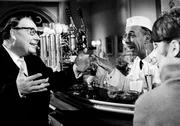 Der früher ewig nörgelnde Paul Perlacher (Heinz Erhardt) ist ein anderer Mensch geworden. Froh gelaunt begrüßt Kellner Gottlieb (Rudolf Platte), der die Wandlung noch gar nicht glauben mag.Bild: © zdf.kultur / ZDF/Divina Film