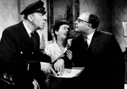 Polizist Rübsam (Beppo Brehm, l.) ist fassungslos. So viele Amtsbeleidigungen wie er hier aus dem Munde von Paul Perlacher (Heinz Erhardt, r.) in drei Minuten hören muss, sind ihm zuvor in seiner gesamten Laufbahn nicht zu Ohren gekommen. Schwester Trude (Else Quecke, M.) hat keine Chance, hier irgendwas zu schlichten.Bild: © zdf.kultur / ZDF/Divina Film