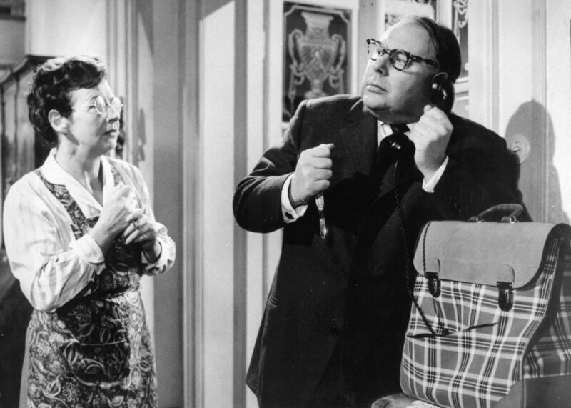 "Na, wenn schon!", denkt Tante Amalie (Grethe Weiser), als sie hört, dass ihr Vermieter Paul Perlacher (Heinz Erhardt) eine Räumungsklage gegen sie erhoben hat.Bild: © zdf.kultur / ZDF/Divina Film