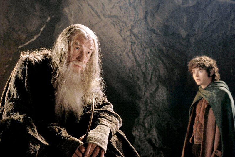 Gandalf (Sir Ian McKellen, li.) sucht in den Minen von Moria nach dem richtigen Weg um Frodo (Elijah Wood) und die Gefährten sicher nach Lothlorien zu führen.Bild: © ASV