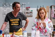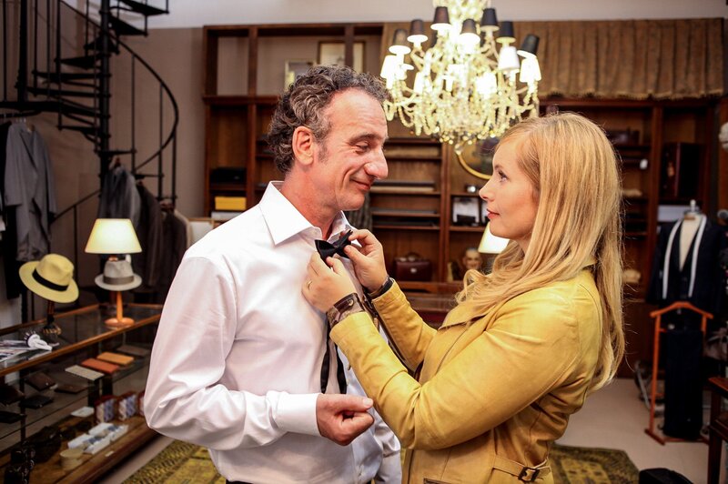 Rainer Cronpichel (Heio von Stetten) und Thea Cronpichel (Nadja Uhl) im Herrenausstatter beim Einkauf.Bild: © ORF