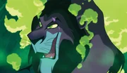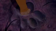 Er stiftet den Kleinen an, sich in ein verbotenes Revier zu begeben, wo dieser prompt in die Stampede einer aufgescheuchten Gnu-Herde gerät. Ausgelöst wurde diese von den drei Hyänen, die Scar bei seinen düsteren Plänen unterstützen. Mufasa, der seinem Sohn zu Hilfe eilt, gerät bei dessen Rettung selbst in Todesgefahr. Im letzten Moment kann er sich an einem Felsvorsprung festkrallen. Doch anstatt seinem Bruder zu helfen, gibt der herbeigeeilte Scar ihm den Todesstoss. Simba aber lässt er im Glauben, er selbst habe die Schuld am Tod des Vaters. Beschämt und untröstlich kehrt Simba seiner Heimat den Rücken und flieht in die Fremde.