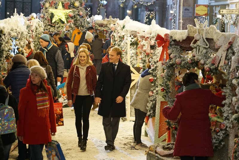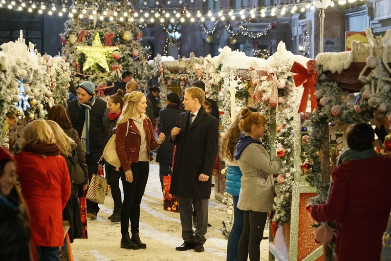 Katie (Merritt Patterson) und Alexander (Andrew Cooper) genießen ihre gemeinsame Zeit auf dem Weihnachtsmarkt von San Senova.Bild: © Cos Aelenei