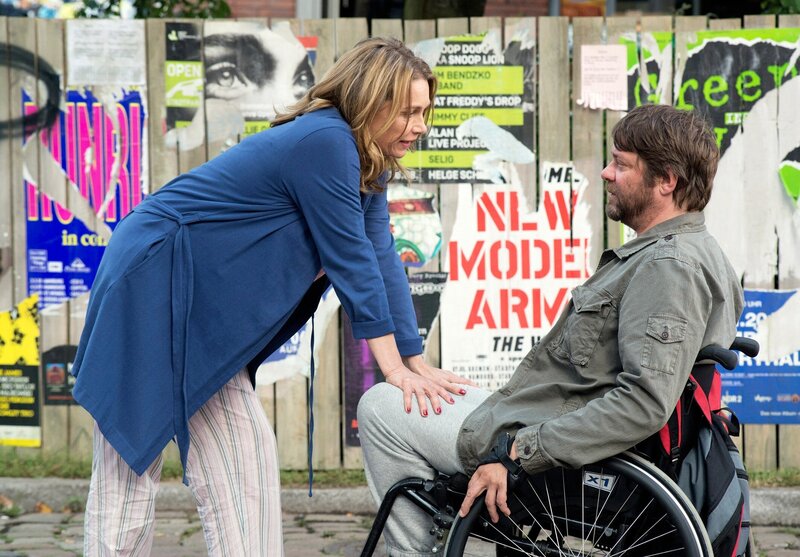 Sophie Brand ist überfordert: Als alleinerziehende Mutter mit zwei Jobs ja auch kein Wunder. Ein Berg nicht bezahlter Strafzettel bringt sie vor den Richter, der ihr 300 Sozialstunden in einem Behindertenheim aufbrummt. Nicht genug damit, setzt er sie auch noch auf seinen eigenen Bruder an: Georg, einen im Heim gefürchteten Problem-Patienten, der seit einem Sportunfall an den Rollstuhl gefesselt ist und nur noch Verbitterung für seine Umwelt übrig hat. Aber Sophie bleibt stark: So schnell lässt sie sich nicht rausekeln. So kommt es, dass aus anfänglicher Antipathie etwas ganz Besonderes erwächst: Vertrauen, Freundschaft, Liebe. Die emotionale Tragikomödie versteht es, ein vermeintliches Tabuthema sensibel umzusetzen. Sophie Brand (Aglaia Szyszkowitz) hat als alleinerziehende Mutter alles bestens im Griff - glaubt sie jedenfalls. Doch ihr kleiner Sohn Linus (Arsseni Bultmann) und ihre pubertierende Tochter Laura (Emilie Neumeister) sehen das ganz anders. Denn neben dem Haushalt muss sie auch noch zwei Jobs wuppen: Zweimal in der Woche räumt sie im Supermarkt die Regale ein, zudem arbeitet sie im Edelrestaurant von Jacques (Martin Rapold), der zielstrebig auf eine gemeinsame Zukunft hinarbeitet. Sich in all dieser selbstgemachten Hektik auch noch um reguläre Parkplätze zu kümmern, ist da zu viel verlangt. So landet Sophie wegen eines Berges unbezahlter Strafzettel vor Gericht. Das Urteil: 300 Sozialstunden in einer stationären Pflegeeinrichtung für Behinderte. Der Richter höchstpersönlich empfiehlt ihr das Pflegeheim "Haus am Park", wo ein ganz besonderer Patient auf die temperamentvolle Parksünderin wartet: sein eigener Bruder Georg (Roeland Wiesnekker), seit einem schweren Autoanfall an den Rollstuhl gefesselt. Dieser ist im Heim für seine Wutausbrüche und sein abweisendes Verhalten berüchtigt. Auch Sophie bekommt bei ihrem Antrittsbesuch eine erste Kostprobe von Georgs aggressiver Verbitterung. Genervt beginnt sie, ihre Pflichtstunden zu absolvieren und sich von Georgs beleidigendem Zynismus nicht aus der Ruhe bringen zu lassen. Als er es jedoch zu weit treibt, gibt sie dem Provokateur klar zu verstehen, dass er eine Grenze überschritten hat. Eine Reaktion, die Georg beeindruckt, denn das Letzte, was er in seiner Situation braucht, sind Mitleid und geheucheltes Verständnis. So öffnet er sich endlich und lässt seine neue "Betreuerin" an sich heran. Aus langsam wachsender Freundschaft wird tiefe Zuneigung. Sophie entdeckt seine sensible Seele voller persönlicher Schuldgefühle. Sie erfährt auch, dass es sich bei ihrem faszinierenden Gegenüber um einen ehemaligen Triathlon-Profi handelt. Um ihn zu neuem Lebensmut zu motivieren, schlägt sie ihm die Teilnahme am Hamburger Stadtmarathon vor. Nur durch gemeinsames Training und einen sehr persönlichen Wetteinsatz lässt sich Georg darauf ein: Wenn er gewinnt, dann bekommt er sie! Eigentlich hatte sich Sophie gerade dafür entschieden, zu Jacques zu ziehen, um endlich Ruhe in ihr Leben zu bringen. Doch nun weiß sie nicht mehr, wohin mit ihren Gefühlen. Das Thema "Behinderung" ist inzwischen weitestgehend in der Mitte unserer Gesellschaft angekommen. Sich diesem sensiblen Sujet vorurteilsfrei und ohne Berührungsängste zu widmen und es ins Zentrum einer ebenso unterhaltsamen wie dramatischen, aber auch überraschenden Liebesgeschichte zu stellen, dieses Wagnis nimmt die von Tomy Wigand einfühlsam inszenierte Tragikomödie auf sich - und überquert ganz locker-leicht die selbst gesteckte Ziellinie. Vor allem gelingt es auch den beiden Hauptdarstellern Aglaia Szyszkowitz und Roeland Wiesnekker, die ungewöhnliche, zu Herzen gehende Entwicklung ihrer eigentlich so disparaten Figuren dem Zuschauer glaubhaft nahezubringen. Eine große Leistung.