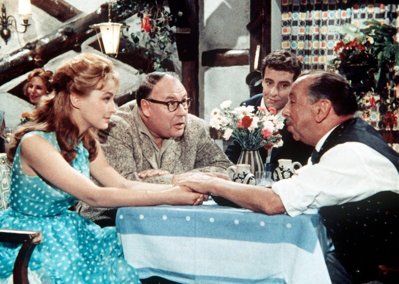 Etwas unfreiwillig wird der sympathische Gottlieb Sänger (Heinz Erhardt) zum Aufpasser der jungen Kiki (Christine Kaufmann).Bild: © ORF