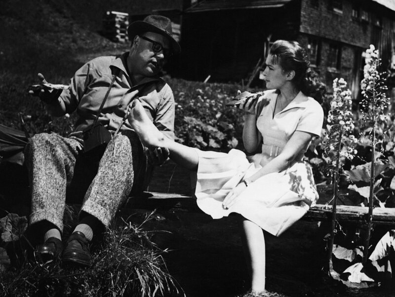 8. Wenn man das Wandern, wie Kiki (Christine Kaufmann), noch nicht so recht gewohnt ist, schmerzen die Füße natürlich. Doch Gottlieb Sänger (Heinz Erhardt) kann ihr fachmännischen Rat erteilen.Bild: © ZDF und Deutsche Film Hansa