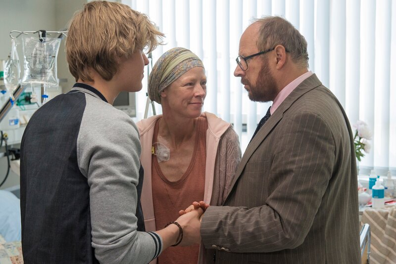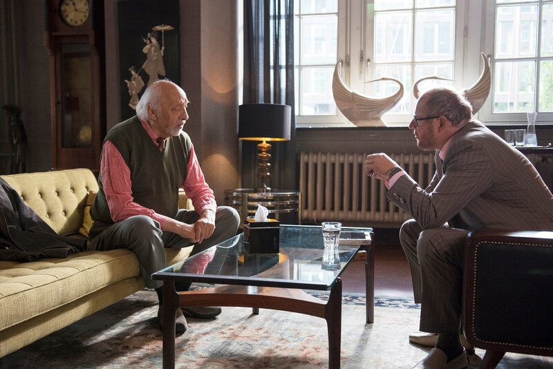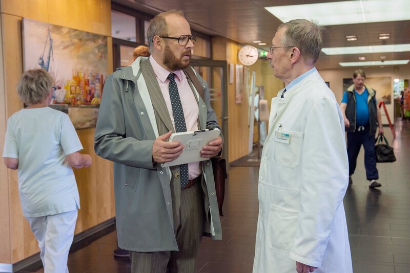 Angela Sorel (Jenny Schily, M) ist tödlich erkrankt. Sie möchte aber, dass die Familie zusammenhält, und bittet ihren Sohn Leo Sorel (Jakub Gierszal, l) und ihren Ex-Mann Dr. Magnus Sorel (Axel Milberg, r) um Unterstützung.