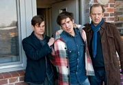 Robert (Peter Heinrich Brix, re.) und Ludger (Lars Rudolph, li.) haben den kriminellen Tim (Philipp Danne) nach einem langen Katz-und-Maus-Spiel endlich geschnappt.Bild: © ARD Degeto/Carsten Schick