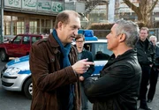 Robert (Peter Heinrich Brix) schwört seinen Kollegen Ludger (Lars Rudolph, li.) darauf ein, ihn bei Rita zu decken, der er vorgaukelt, der Chef des LKA zu sein.Bild: © ARD Degeto/Carsten Schick
