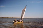Mit einem selbstgebauten Segelboot erkunden Ben und Richie das Delta.Bild: © NDR/Michael Höft HTTV