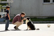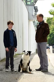 Der 18-jährige Alexander (Vincent zur Linden, M.) zeigt Ibo (Mika Ullritz, l.), wie man mit dem Hund umgeht.