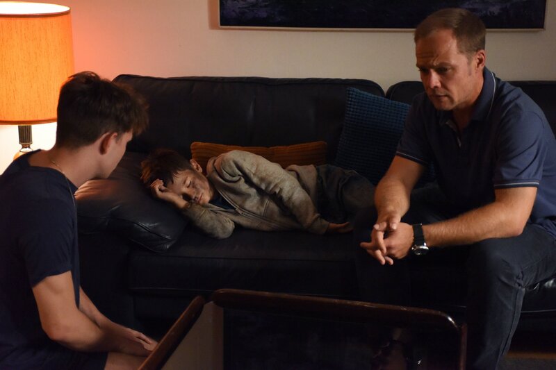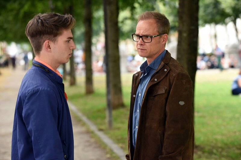 Opferschutzkommissar Benede Carlos (Matthias Koeberlin, r.) nimmt Kontakt zu Alex (Joshio Marlon) auf und bespricht mit ihm das weitere Vorgehen. Alexander hat gerade seine Mutter verloren. Der Vater hatte sie umgebracht.