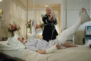 Clouseau (Steve Martin, r.) besucht seinen verletzten Chef Dreyfus (Kevin Kline, l.) und richtet mit der Fernbedienung des Bettes Unheil an.Bild: © 2006 Columbia Pictures Industries, Inc. and Metro-Goldwyn-Mayer Pictures Inc. All Rights Reseved.