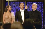Clouseau (Steve Martin, M.) und Ponton (Jean Reno, r.) wollen mit Nicoles (Emily Mortimer, l.) Hilfe bei einem Ball, zu dem Clouseau nicht eingeladen ist, einen Zweifach-Mord lösen und den Verbleib eines Diamantrings klären.Bild: © METRO-GOLDWYN-MAYER PICTURES INC. AND COLUMBIA PICTURES INDUSTRIES, INC.
