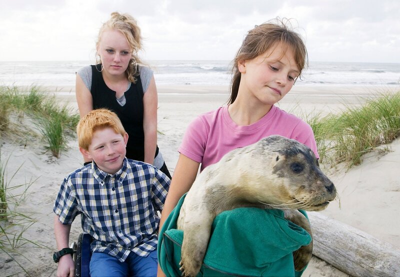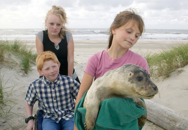 ARD/NDR DER SEEHUND VON SANDEROOG, am Samstag (20.08.11) um 11:10 Uhr im ERSTEN. Knopfauges Rettung: Jan (Sebastian Husak), Silke (Pia Koch) und Milla (Joanna Ferkic).
