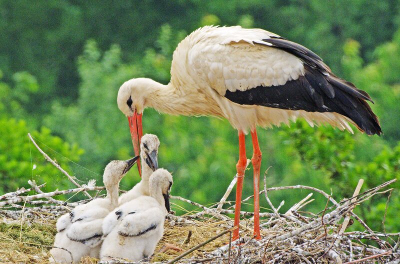 Storchenfamilienidylle: Noch wird im Nest der Weißstörche bei Sonnenschein gefüttert. Wenn allerdings Gewitter aufziehen, liegt ihr Horst sehr exponiert.Bild: © WDR/Längengrad Filmproduktion/Robin Jähne