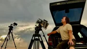 Warten auf den richtigen Blitz: Dem Filmer schafft der offene Kofferraum wenigstens einen kleinen Schutz gegen den Regen, dennoch sitzt er beim Gewittersturm immer auf dem Präsentierteller.Bild: © WDR/Längengrad Filmproduktion/Robin Jähne