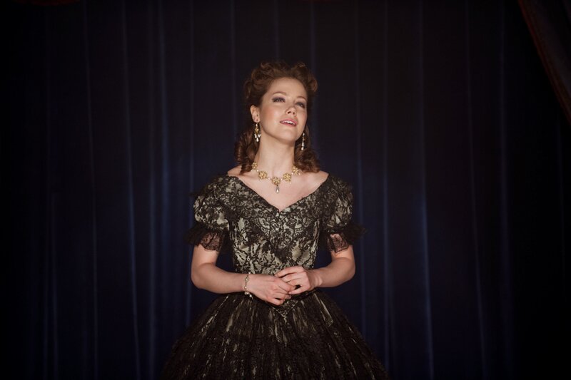 Opernsängerin Elisabeth Wells (Veronica Ferres) versucht ihren Geliebten, den Impresario John Watson (Christian McKay), von einem Auftritt Paganinis in London zu überzeugen.Bild: © ZDF/BR/Summerstorm/Dor/Construction/Arte/Walter Wehner