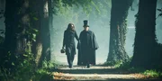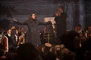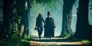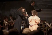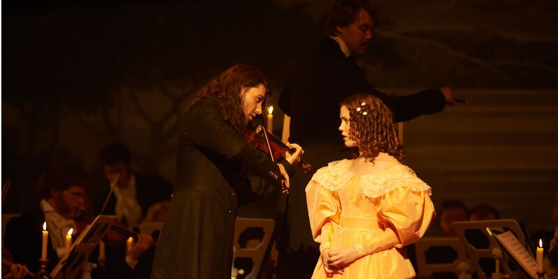 Von links: In London begegnet Niccolò Paganini (David Garrett, rechts) der jungen Sopranistin Charlotte Watson (Andrea Deck) und ermöglicht ihr ihren ersten Auftritt als Sängerin.Bild: © ZDF/BR/Summerstorm/Dor/Construction/Arte/Walter Wehner