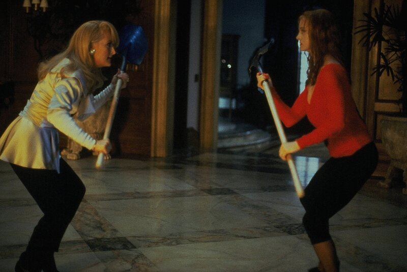 Die Schriftstellerin Helen Sharp wird schier verrückt vor Wut: Ausgerechnet die Schnulzensängerin Madeline Ashton (Meryl Streep, l.) spannt ihr den Schönheits-Chirurgen Ernest Menville (Bruce Willis, r.) aus und schleppt ihn flugs vor den Traualtar.
