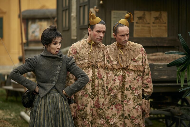 Drei etwas seltsame Geschwister haben die geheimnisvolle Fähigkeit, das Schicksal von Menschen zu beeinflussen. Sie wetten gegeneinander: Wird der ehemalige Straßenjunge Urban mit ihrer Hilfe sein Glück finden, oder wird er sterben? Die Brüder Rodovit (Jaroslav Plesl, r.)und Rodovoj (Václav Neužil, M.) wollen für Urban das Beste und beraten ihn dafür in ausgefallenen Verkleidungen. Ihre Schwester Lichoradka (Jana Plodková, l.) bevorzugt graue Lumpen: Sie ist immer grantig und will Urban mit allen Mitteln ins Verderben ziehen.Bild: © Zuzana Panská / Evolution Films / ZDF