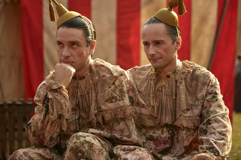 Die beiden Brüder Rodovit (Jaroslav Plesl, r.) und Rodovoj (Václav Neužil, l.) merken, dass ihr Zögling Urban auf dem Jahrmarkt in ernste Schwierigkeiten gerät. Sie überlegen, wie sie ihn daraus befreien können.Bild: © Zuzana Panská / Evolution Films