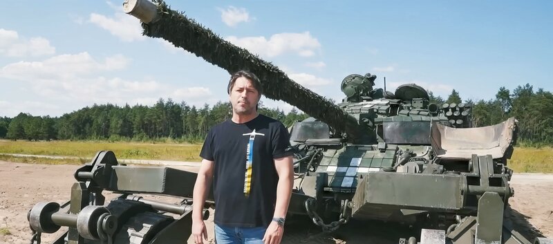 Der ehemalige britische Soldat Nick Mead besitzt die größte private Panzerflotte des Vereinigten Königreichs und macht mit Verkäufen in die Ukraine ein Millionengeschäft.Bild: © ZDF und © Premières Lignes 2024.