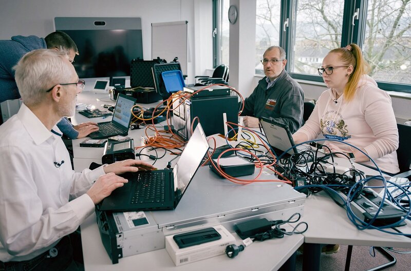 Teamarbeit: Forschende arbeiten mit Hochdruck an neuen Programmen gegen Hacker.Bild: © Franz-Josef Recktenwald