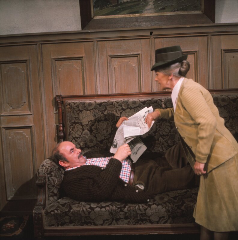 Der reiche Haslinger (Walter Sedlmayr) und Nanni (Erni Singerl), seine zänkische Frau, wissen ganz genau, warum sie den Großvater gekauft haben: Sie möchten ihn beerben.Bild: © BR / Sessner