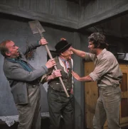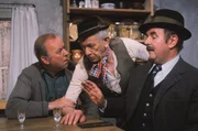 Hier wird um einen Großvater gehandelt. Warum nur will der reiche Haslinger (Walter Sedlmayr, rechts) durchaus dem Kreithofer (Toni Berger) seinen Großvater abkaufen? Er bietet eine hohe Summe für ihn und der Kreithofer ist ganz verwirrt. Denn er hat noch nie davon gehört, dass jemand seinen Großvater verkauft hätte.Bild: © Sessner / BR