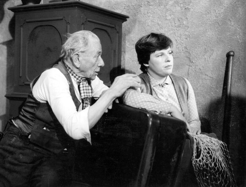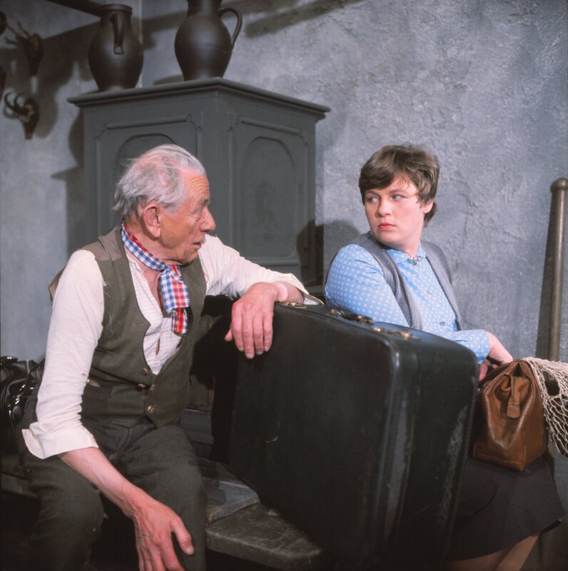 Die Magd Zenz (Christiane Blumhoff) hat ihre Sachen gepackt. Der Großvater (Ludwig Schmid-Wildy) bedauert es sehr, dass sie geht. Sie hat sich immer so schön über seine Späße geärgert.Bild: © Foto Sessner / BR