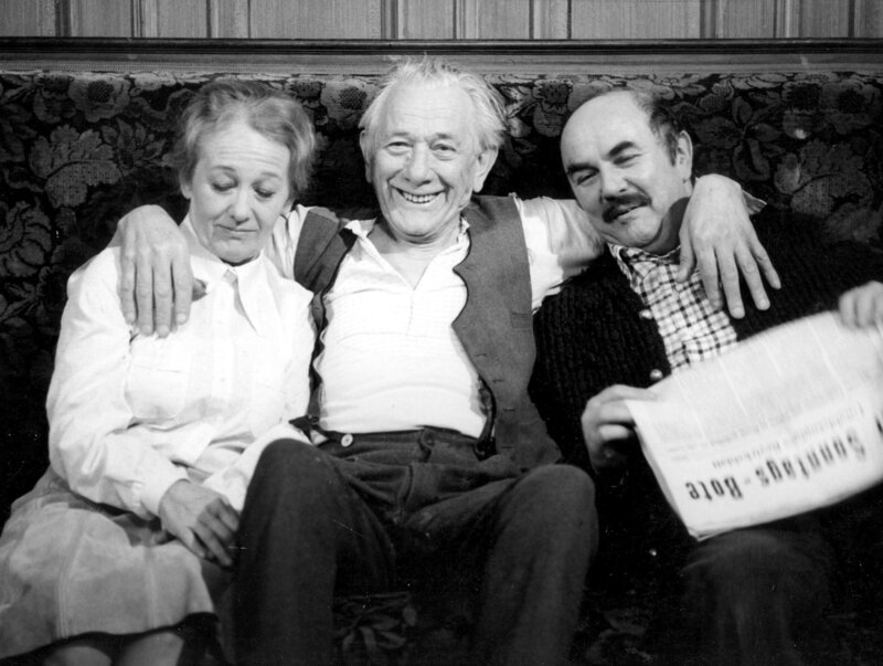 Mit süßsauren Mienen "verwöhnen" der Haslinger (Walter Sedlmayr, rechts) und seine zänkische Frau Nanni (Erni Singerl) den Großvater (Ludwig Schmid-Wildy), den sie sich für teures Geld gekauft haben. Sie wissen auch genau, warum: Sie wollen den Großvater beerben.Bild: © Sessner / BR