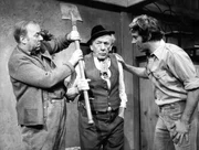 Was hat der Großvater (Ludwig Schmid-Wildy, Mitte) nun schon wieder angestellt? Er wollte dem Enkelsohn Lois (Henner Quest, rechts) helfen, Kartoffeln auszugraben, verursachte aber mehr Flurschaden als Hilfe. Der Kreithofer (Toni Berger) ist manchmal recht ärgerlich über des Großvaters Streiche. Mit dem Hof steht es ohnehin nicht zum besten.Bild: © Sessner / BR