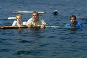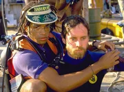Um auf andere Gedanken zu kommen, fliegt Ellen zu ihrem anderen Sohn (Lance Guest, r.), der zusammen mit Jake (Mario Van Peebles, l.) Muscheln für seine Doktorarbeit untersucht. Doch der weiße Hai ist Ellen gefolgt und macht Jagd auf die restlichen Brodys.