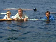 An Bord der "Neptune's Folly" gehen Jake (Mario Van Peebles), Michael (Lance Guest), Ellen (Lorraine Gary) und Hoagie (Michael Caine) auf Haifischjagd.