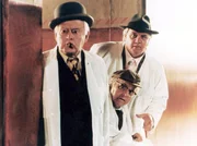 Nach langer Pause tritt die legendäre Olsenbande noch einmal zum (wirklich) allerletzten Streich in Aktion: Egon entkommt einer Nervenheilanstalt, Kjeld einem Altersheim und Benny einer Taxizentrale. Natürlich hat Egon für ihren ultimativ letzten Coup einen Plan: Die englischen Kronjuwelen sollen es sein. Wie immer geht alles schief, aber nur fast... Ein gefährlicher roter Koffer mit der Aufschrift "WANDENBERG" taucht in Kopenhagen auf. Er enthält Unterlagen über weltweiten Schwindel und Korruption. Oberstaatssekretär Hallandsen (Bjorn Watt-Boolsen) vom Justizministerium wird mit der - natürlich völlig diskreten und inoffiziellen - Vernichtung des Koffers beauftragt. Als echter Beamter schiebt er den Auftrag an Abteilungsleiter Holm Hansen (Henrik Koefoed) weiter. Während der die Aktion in den Sand setzt, taucht Egon Olsen (Ove Sprogoe) im Fernsehen auf. Seit 1981 Insasse einer Nervenheilanstalt, soll der altvertraute Ganove in einer Talk-Show als einsamer, abgeschobener Alter vorgeführt werden. Doch als Egon auf dem Weg zur Toilette in den Studios von Nordisk Film (wo alle Olsenbanden-Filme gedreht wurden) auf seine alten Klamotten stößt, erwacht er mit Melone und Zigarre quasi zu neuem Leben. Und da ist auch schon sein alter Kumpel Benny (Morten Grunwald) zur Stelle, der ihn im Fernsehen gesehen hat und natürlich hofft, dass Egon einen neuen Plan hat. Vor 18 Jahren zerbrach die Olsenbande. Reich und glücklich ist keiner von ihnen geworden: Benny arbeitet schwarz in einem Taxi-Unternehmen, Egon wird von Psychiatern als wissenschaftliches kriminelles Objekt untersucht und Kjeld (Poul Bundgaard/Tommy Kenter), bei dem sie sich nun alle drei wiedersehen, ist im Pflegeheim gelandet und sitzt im Rollstuhl. Als Olsenbande endlich wieder vereint, kommt Egon schnell zur Sache: Er will die englischen Kronjuwelen stehlen. Doch der Plan dazu befindet sich dummerweise im Institut für theoretische Kriminalität - gut verwahrt in einem Franz-Jäger-Safe. Die drei machen sich auf den Weg und parallel mit ihnen jener Holm Hansen, der sich noch immer nicht des Wandenberg-Koffers bemächtigt hat. Auch sein Chef hat Egon im Fernsehen gesehen und sich an dessen außerordentliche Qualitäten erinnert. Ihm ist klar, nur Egon kann den Koffer beschaffen. Unterstützt von Kommissar Jensen (Axel Strobye), Egons Gegenspieler aus alten Zeiten, entführt Holm Hansen Egon ins Justizministerium. Hallandsen verspricht ihm zehn Millionen für den Coup und Egon macht sich mit einem Lieferwagen mit Alarmanlage, einer Sackkarre und zwei Spraydosen Farbe auf den Weg. Natürlich beschafft er den Koffer, doch zum Dank wird er in einen Keller gesperrt und soll eliminiert werden. "Der (wirklich) allerletzte Streich der Olsenbande"- das lang erwartete Comeback der Ganoven, die sich mit ihren 13 Filmstreichen im Osten Deutschlands Kultstatus erobert haben, wurde 1998 von Henning Bahs, quasi Vater und Autor aller Olsenbandenkomödien, ersonnen. Wie immer hat er ein Feuerwerk abstrus-liebenswerter Gags erdacht, raffiniert verhakelt mit den so wohl bekannten Figuren und deren kriminellen Eigenheiten. Egon Olsen: Ove Sprogoe Benny Frandsen: Morten Grunwald Kjeld Jensen: Poul Bundgaard/Tommy Kenter Ruth Hansen: Grethe Sonck Borge Jensen: Jes Holtso Kriminalkommissar Jensen: Axel Strobye Kriminalassistent Holm: Ole Ernst Hallandsen: Bjorn Watt-Boolsen Holm-Hansen: Henrik Koefoed Dummes Schwein: Ove Verner Hansen Alf: Michael Hasselflug...