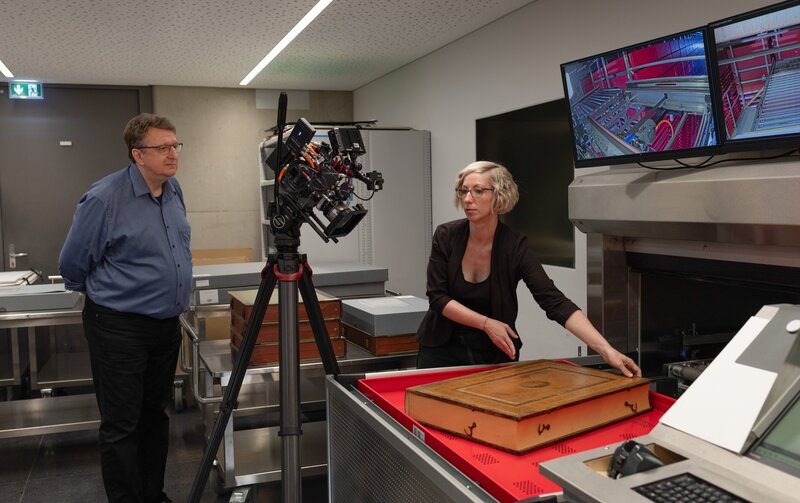 Leopold Kudrna (Sammlungsverwaltung Albertina), Regisseurin Alex Wieser.Bild: © ORF/V-set GmbH/Stefan Vucsina