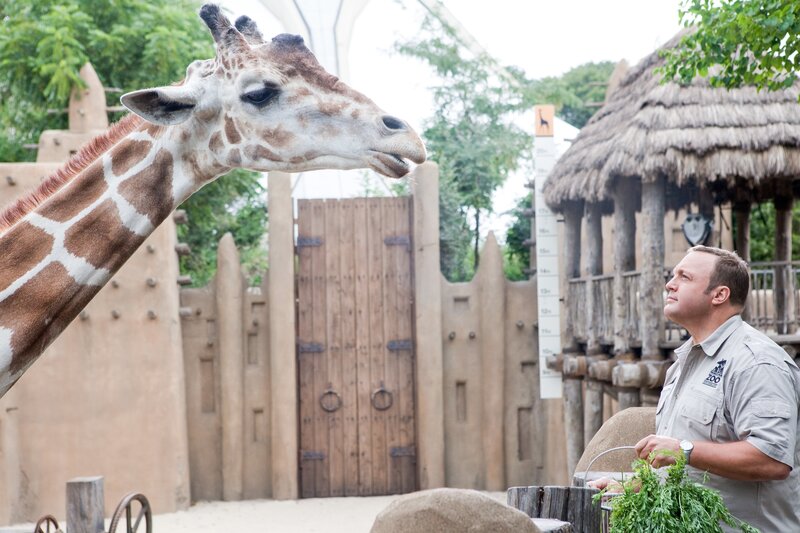 Hauptdarsteller Kevin James ist in Deutschland bekannt geworden als schusseliger Paketzusteller in kurzen Hosen in der erfolgreichen Sitcom "King Of Queens", die RTL II seinerzeit als Deutsche Erstausstrahlung präsentierte. In seinem ersten Kinofilm "Hitch - Der Date Doktor" erhielt Kevin James noch Datingtipps von Will Smith. Diese Aufgabe übernehmen in der Kino-Komödie "Der Zoowärter" die Tiere eines Zoos, was eine turbulente Mischung aus "Madagascar" und "Nachts im Museum" ergibt. Der vollschlanke US-Star überzeugt auch hier mit vielen Slapstick-Einlagen in seiner Paraderolle als unprätentiöser, sympathischer Chaot. Neben dem großartigen Comedy-Talent von Kevin James und der Tatsache, dass sein guter Freund Adam Sandler den Film mitproduziert hat, sind es auch die tierischen Zoobewohner, die die Komödie, zu einem großen Familienspaß machen. Im amerikanischen Original liehen Top-Stars wie Cher, Nick Nolte, Sylvester Stallone oder Adam Sandler den Tieren ihre Stimme. Die deutsche Fassung ist nicht weniger hochkarätig besetzt. Unter anderem bringen Mario Barth, Jan Josef Liefers und Anna Loos Affe, Bär & Co. zum Sprechen. In einer Gastrolle ist Show-Legende Thomas Gottschalk zu sehen.