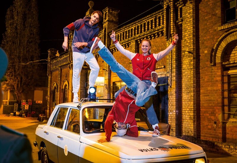 Rollen und Darsteller: Frank Satzke Gordon Kämmerer Martina "Matti" Willner Sonja Gerhadt Alex Oliver Konietzny Michel Sebastian Jäger Hartmann Dietz Rainer Bock Walter Satzke Arved Birnbaum Tim Maximilian Wohlfahrt Meinhart Wolfgang Stumph Rasche Bernd Stegemann Buchner Godehard Giese Renate Fuchs Ramona Kunze Libnow Bastian Patrick Wudke u. v. a. Im Sommer 1985 entflammt ein amerikanischer Kinofilm auch die Jugendlichen in der DDR: "Beatstreet" sorgt für volle Kinos und in der Folge für ein neues Phänomen in den Straßen - Breakdance. Der 18-jährige Frank ist wie elektrisiert und gründet mit gleich gesinnten Freunden in Dessau die "Break Beaters". Die Truppe tanzt auf der Straße und bildet bald die Speerspitze der Breakdance-Bewegung in der DDR. Doch schneller als es ihnen lieb ist wird auch die Staatsmacht auf die Straßentänzer*innen aufmerksam. Sie behält gern die Kontrolle über die Freizeitaktivitäten ihrer Jugend. Denn was die DDR nicht verbieten kann, versucht sie zu kontrollieren - ergo muss das Vorhaben sozialistisch werden. So wird aus Breakdance "akrobatischer Schautanz" und die "Break Beaters" werden als Vorzeigetruppe aufgebaut, durch das Land geschickt und bald gefeiert wie Rockstars. Doch der Ruhm hat seinen Preis und Frank wird langsam bewusst, dass dieser ganz schön hoch ist. Dessau Dancers ist ein Feelgood-Movie mit gesellschaftlich-historischem Hintergrund. Der Film beleuchtet einen kleinen Ausschnitt der Breakdance-Kultur der DDR und knüpft damit an die öffentliche Auseinandersetzung mit DDR-Jugendkulturen und ihrer Rolle als gesellschaftliche Opposition an. Gleichzeitig ist Jan Martin Scharf ein gut erzählter Tanzfilm gelungen, der glaubhaft schildert, wie eine Bewegung "von unten" in die Mühlen eines Systems gerät und dabei ihre Seele zu verlieren droht. Der Film zeigt DDR -Geschichte, doch die Frage, wie viele seiner Überzeugungen man für den Erfolg aufzugeben bereit ist, ist eine universelle, sie zeigt sich auch anderswo.