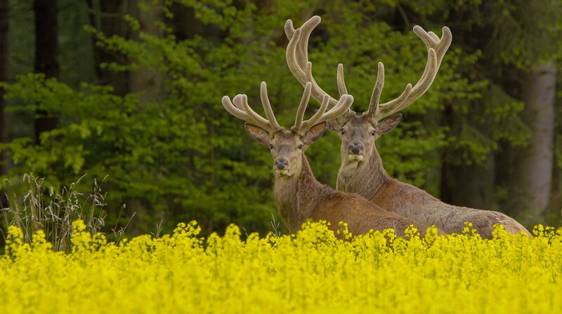 Wochenlang verbringen die Rothirsche die Tage im Sommer im Rapsfeld. Dort gibt es Nahrung und Deckung im Überfluss.Bild: © NDR/NDR Naturfilm/Doclights/Gernot Maaß