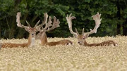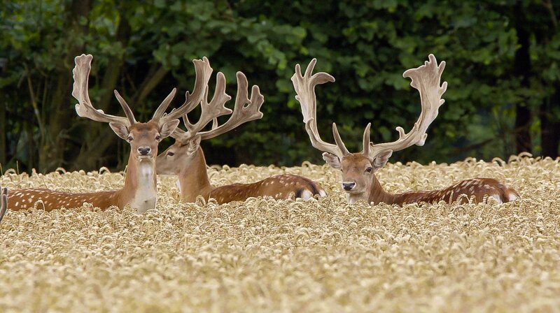 Im Sommer streifen die Damhirsche in Rudeln von sieben bis zwölf Tieren umher. In den Weizenfeldern können sie sich verstecken und von den Ähren naschen.Bild: © NDR/NDR Naturfilm/Doclights/Gernot Maaß